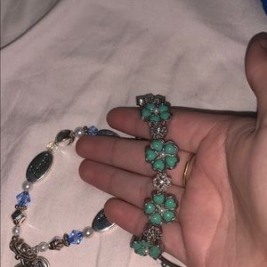 super cute, stylish bracelets! all from pandora. includes a teal flower kind, teal and blue beads and a positivity bracelet. words include- love, joy, and peace!!