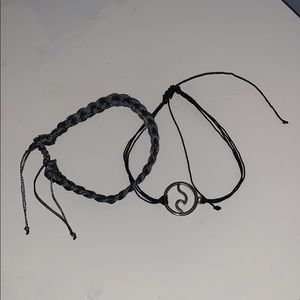 one black w wave charm other green braided/they run kinda big/kinda like PURA VIDA bracelets