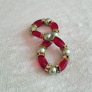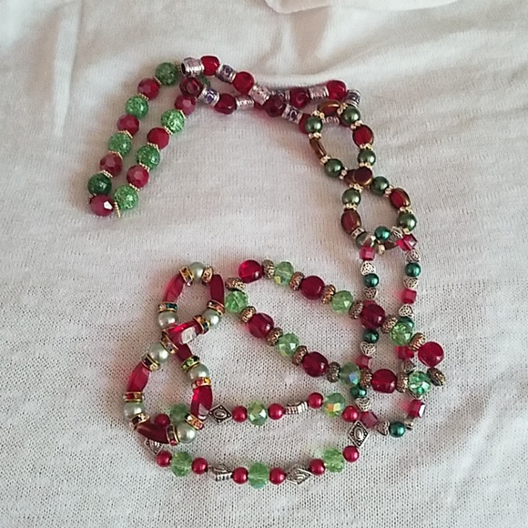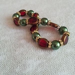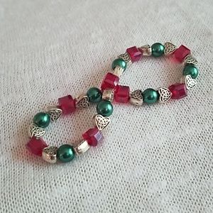 These Christmas inspired bracelets are made with natural stones, glass, ceramic, faux pearl and metal beads on elastic bands for ease of use. Layer for a more dramatic look. These are one of a kind and approximately 7.5 inches around.