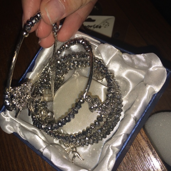 silver bracelet with charms on each ring.