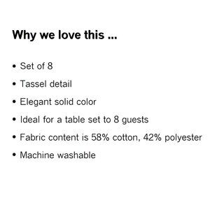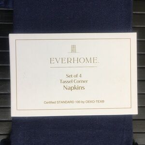 brand new Set of 8 Everhome Solid Color Navy Blue Fabric Napkins with Tassels