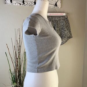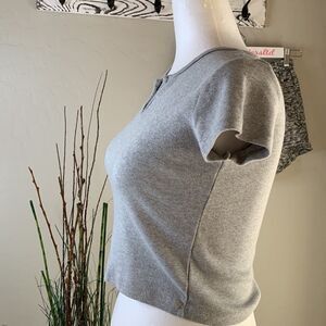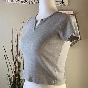 brandy Melville gray crop top V cut out at neckline short sleeves
