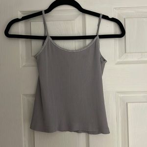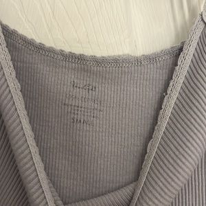 periwinkle / blue color top super stretchy. neck is kinda high up