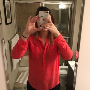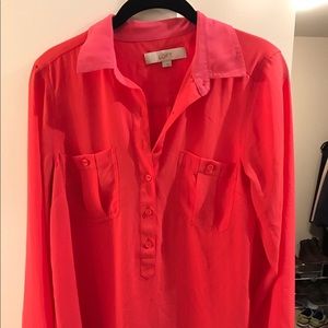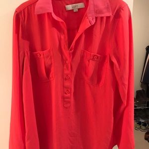 Bright orange shirt, with pink collar. Perfect for work! In great condition. Silky like materiel