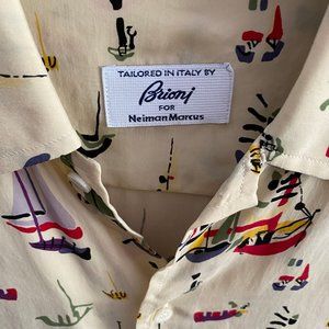 brioni for neiman marcus ivory sailboat print short sleeve shirt - size medium (gently used)