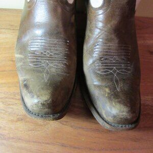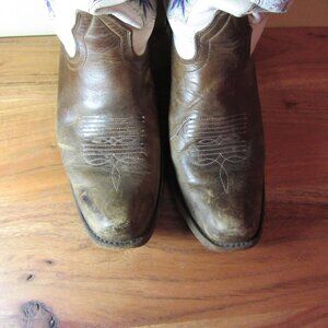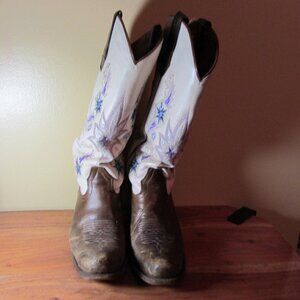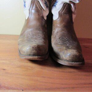 cream brown broken in embroidered cowgirl boots size 7 Alcala's Chicago (CL349)
