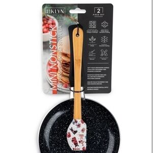 Perfectly sized for a breakfast for one or a kid-sized meal, this pair of mini fry pan and spatula protector features Brooklyn Steel Co.'s durable multilayer non-stick coating that uses less oil and butter for healthier cooking.
