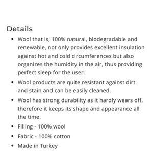 Material: filled 100% wool