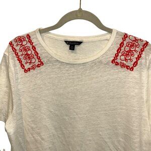 brooks brothers STUNNING LINEN red embroidered shoulders t-shirt top XL