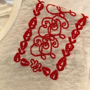 brooks brothers STUNNING linen red embroidered shoulders t-shirt top XL