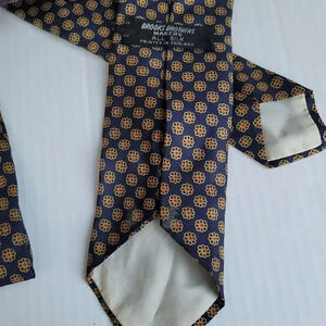 The Brooks Brothers Makers silk tie in blue with a dot print is a vintage accessory crafted in England. This pointed style tie is made of high-quality silk, adding a touch of sophistication to any outfit. Perfect for the distinguished gentleman looking to elevate their wardrobe with a classic and stylish piece.