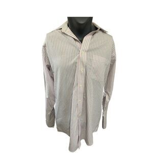 brooks brothers Mens Blue White Striped Long Sleeve Dress Shirt 15 1/2 32 Large