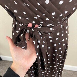 brown polka dot girly quirky downtown it girl midi dress