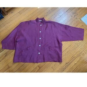 bryn WALKER 100% Linen Magenta Pink Relaxed Fit Standup Collar Blouse Size Small