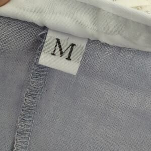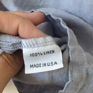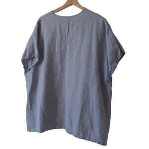 Brian Walker made in USA size medium women's top v neck oversized boxy fit loose fitted 100% linen blue shirt open sleeve length 27. pit-to pit 29 in. Excellent pre-owned condition