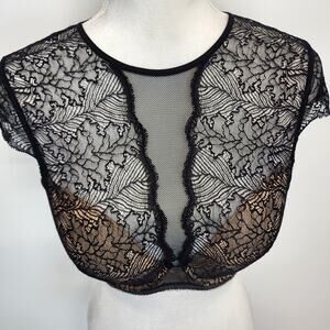 b.tempt'd Black Lace Neck Bralette Top Womens XL Cap Sleeve Built In Bra Sultry
