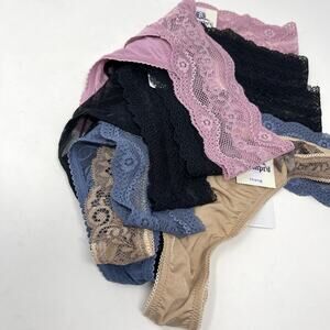 b.tempt’d NWT Women's 5 Pack Lacey Thong Panties Size 6M Blue Pink Black Beige