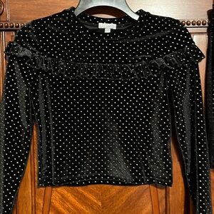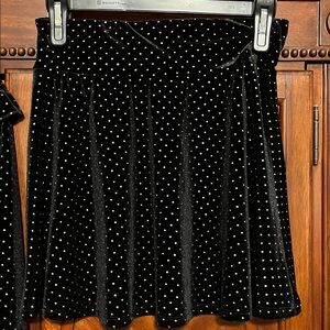 btween Black ‘Velvet Like’ Girl’s Skirt Set with Gold Polka Dots