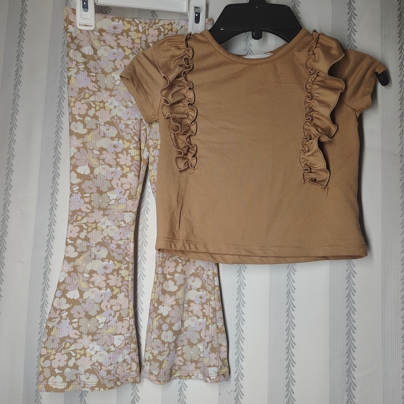 btween Brown Top and Patterned Pants Set