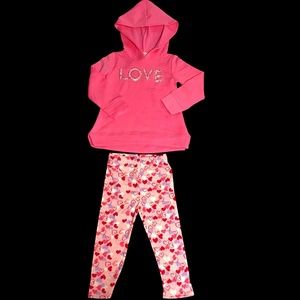 Adorable kids matching set by btween. Features cream fabric with black heart patterns. Soft and comfortable for everyday wear.
