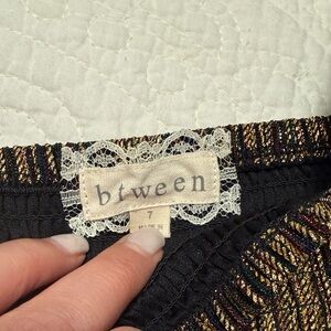 Charming kids' skirt and top with ruffled sleeves. Gold and black striped pattern. Ideal for stylish outings. Stunning in person, worn once. Excellent condition