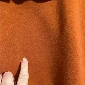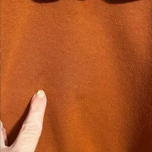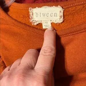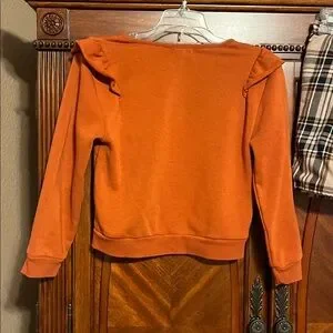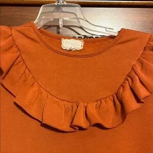Shirt is Long Sleeve Sweatshirt with accent ruffle in Burnt Orange