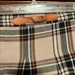 Skirt is Brown and Black Plaid with elastic waist and faux belt accent