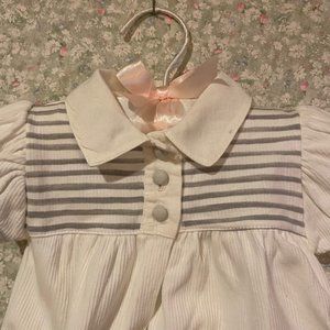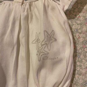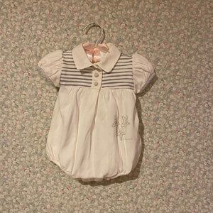 Comfy little suit for girl or boy although it leans towards looking more for a boy. Tags are in french and faded.