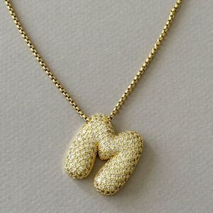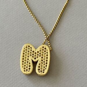 diamond decor bubble initial M pendant necklace in gold tone hardware