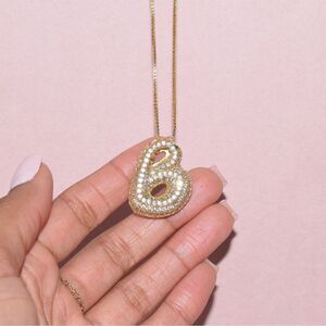 diamond decor bubble initial B pendant necklace in gold tone hardware