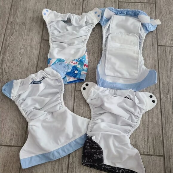 3 pocket diapers and 1 all-in-one, velcro and snap down