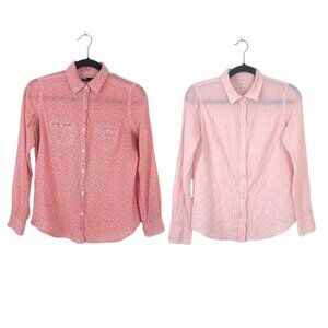 bundle 2 Lightweight Printed Button Up Casual Shirts Summer Office XS pink/red