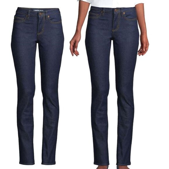 bundle 2 Pair Land’s End Dark Wash Mid-Rise Straight Jeans Size 2