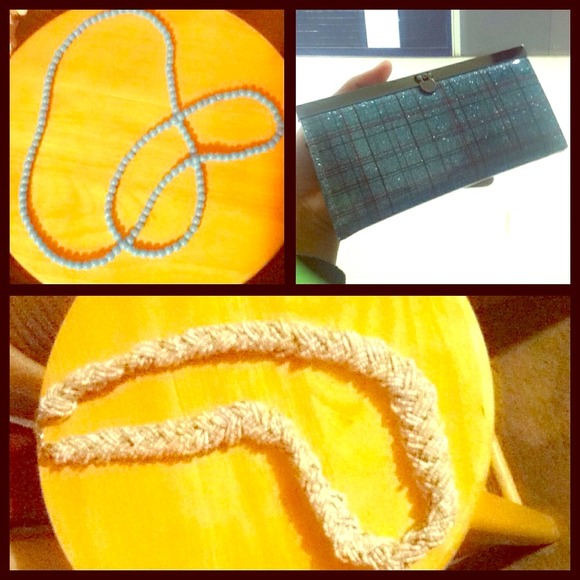 #light blue long necklace # glittery clutch #cream colored pretty necklace