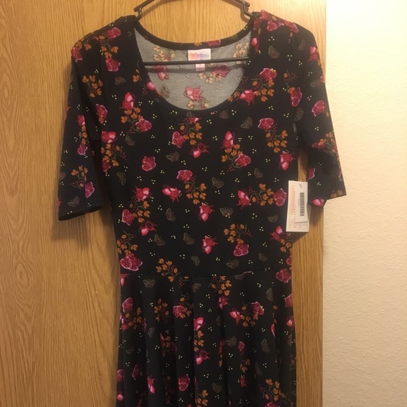Lula row small Nicole dress with tags Black background with pink butterflies