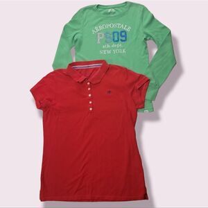 bundle of 2 Aeropstale Tops. Green Thermal. Red Collared Pullover. XL, XXL