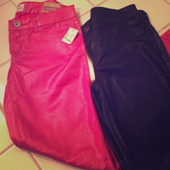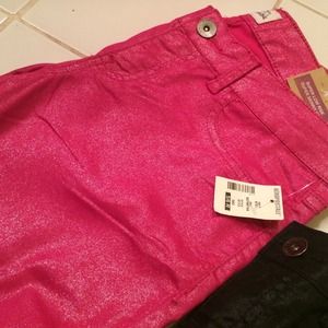 They have NEVER been worn. the black one doesn't have its tags because I took them off when I tried them on. I never wore them out. Size 5/6. From Aeropostale. They are a shimmery, leather type material . Very pretty. feel free to ask questions!