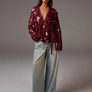burgundy Party Women's long sleeve sequin Blouses
