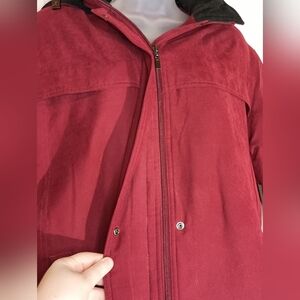 Stay stylish and warm with this elegant suade burgundy jacket.