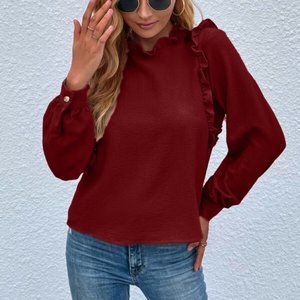 Ruffle Detail Blouse 100% Polyester Tags are letters xs-0 S-2/4, M- 6, L -8/10, Xl-12 ships in 6-10 days fall winter jackets summer chic Summer spring Bohowork Fitted hippie 60’s 90’s 70’s beachy western pool coachella festival birthday gift resort bohemian retro vintage johnny was vacation gypsy spell vici arnhem anthro girly trendy resort chic casual dressy office work sexy modest festival contemporary layer classic trendy layered casual office preppy date night minimalist winter fall summer spring boho gypsy hippie beachy birthday gift anthropologie madewell free people faithful love lemons mumu wildfox reformation revolve zara dressy office work sexy modest festival contemporary l