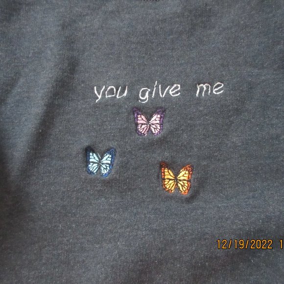 butterfly embroidered crew neck sweater