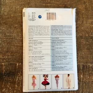 Butterick PATTERN 5925 11.5" Fashion Doll Clothes Evening Wardrobe — Dress, Gown, Tunic, Pants, Bustier, Skirt, Gloves, Bow, Coat UNCUT