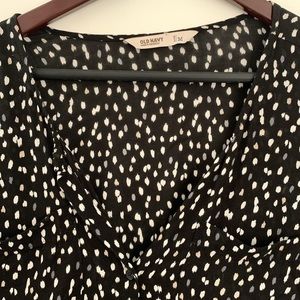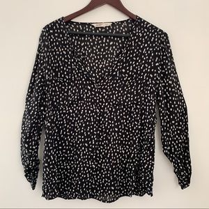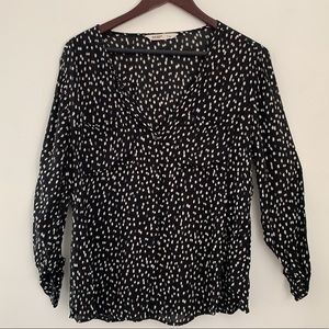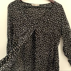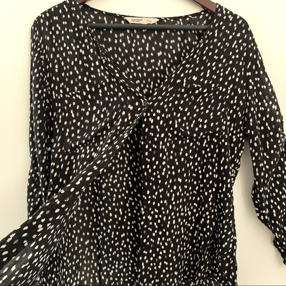 button down blouse. 1 pocket on each breast. Lightweight fabric, no stretch. Adorable abstract spot pattern!