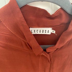 rust colored rayon button down, puff sleeve blouse. like new condition. worn 1X