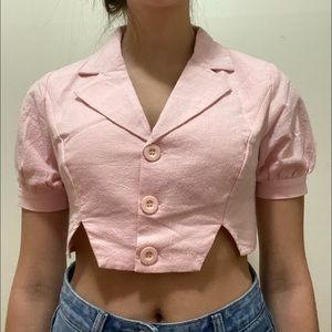 Three button pink cropped top, NEVER WORN!