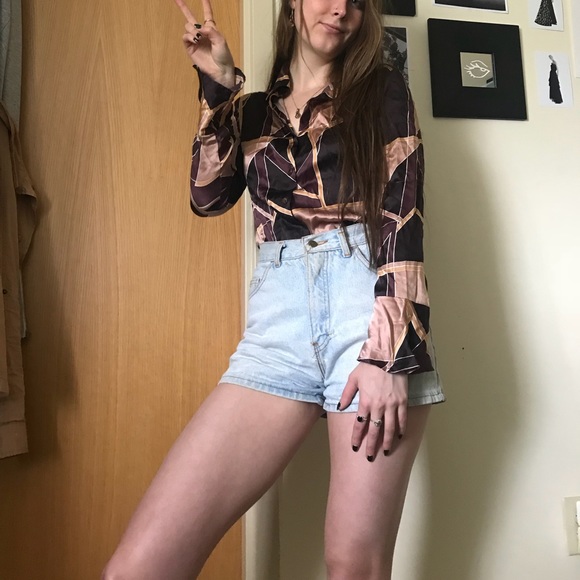 funky fresh 70s vintage bell sleeved button up in satin so you feel luxurious