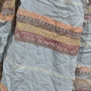 Button up jacket. can be worn as a top. long sleeve with fringe detail. and buttons in the front