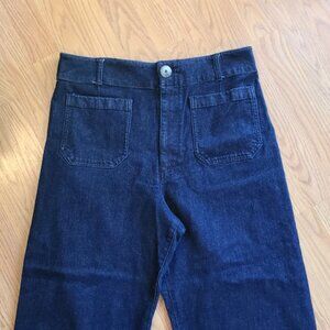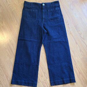 by ANTHROPOLOGIE THE COLETTE CROPPED WIDE-LEG PANTS HIGH RISE SILK DENIM sz 32