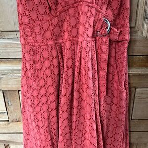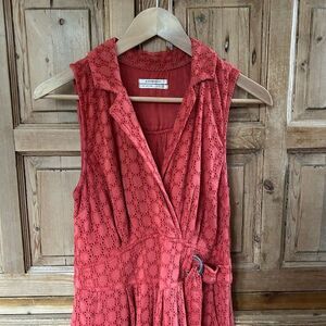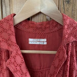 by Anthropologie 4 Orange Eyelet Dress Embroidered Cottagecore Boho Lined Pocket