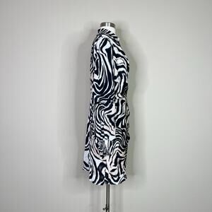 by Anthropologie | Abstract Graphic Zebra Print Black White Draped Mini Dress 14
